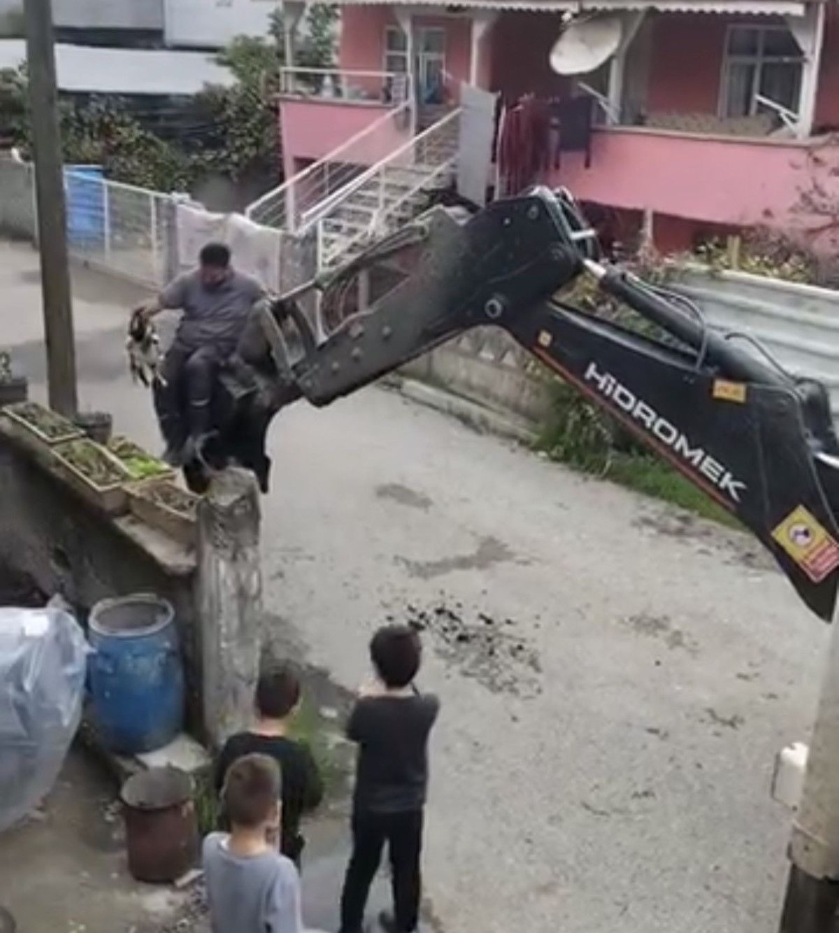 Kedi güvenli bir şekilde alındıktan sonra çocukların alkışları eşliğinde sokak seviyesine indirildi. Kurtarma operasyonu sırasında çevre sakinleri ise o anları cep telefonlarıyla kayda aldılar.